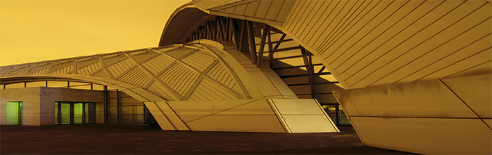 此為眉山展覽館項目,此屋面系統采用的是新型建筑材料金屬...